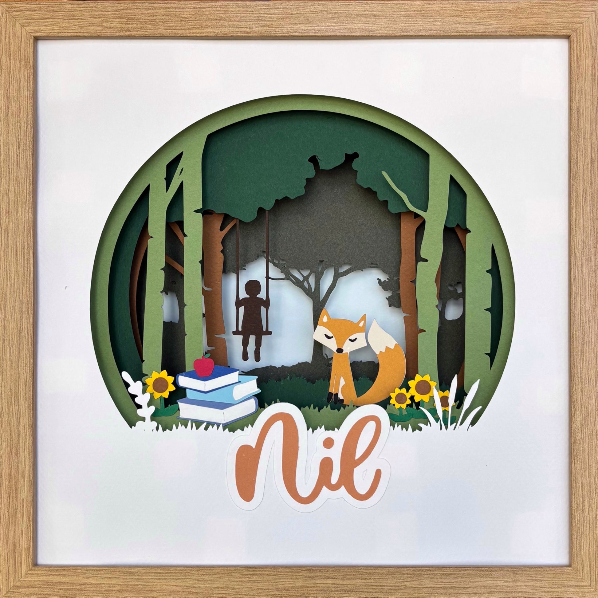 A personalised fox and forest theme paper cut art.